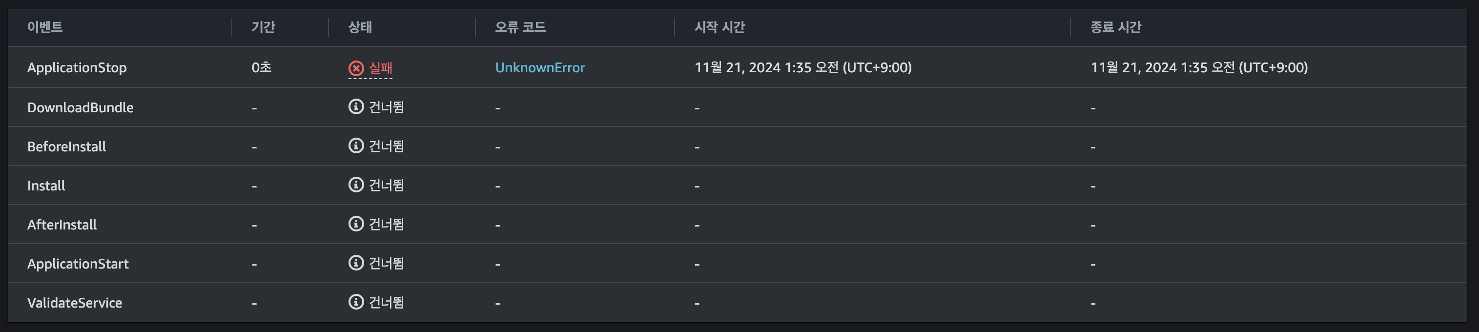 7-2. 배포 실패 ApplicationStop - UnknownError