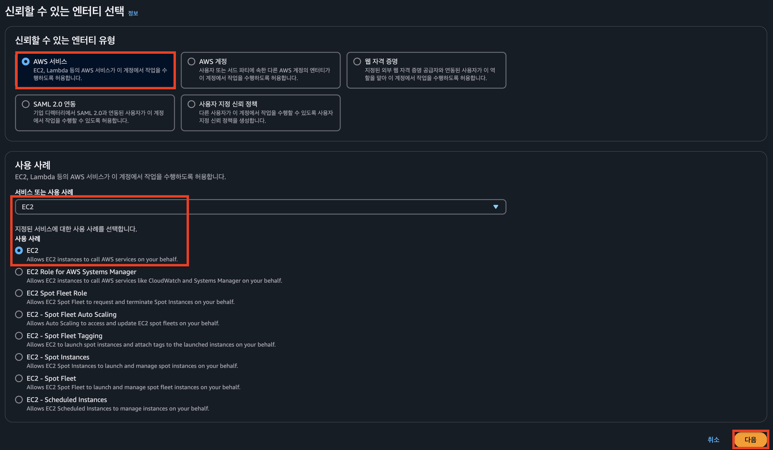 선택 후 `다음` 버튼을 클릭합니다.
