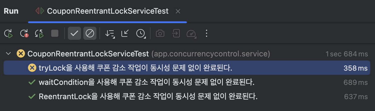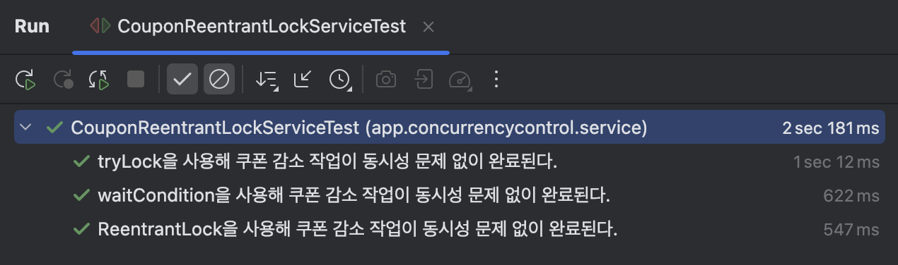 - `tryLock(10, 1, TimeUnit.SECONDS)`은 최대 10초간 Lock 획득을 시도하고, Lock이 획득되면 1초 동안 유지합니다.