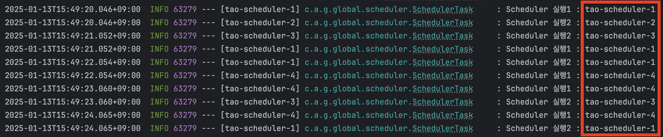 threadPoolTaskScheduler.setThreadNamePrefix("tao-scheduler-"); // 스레드명 접두사