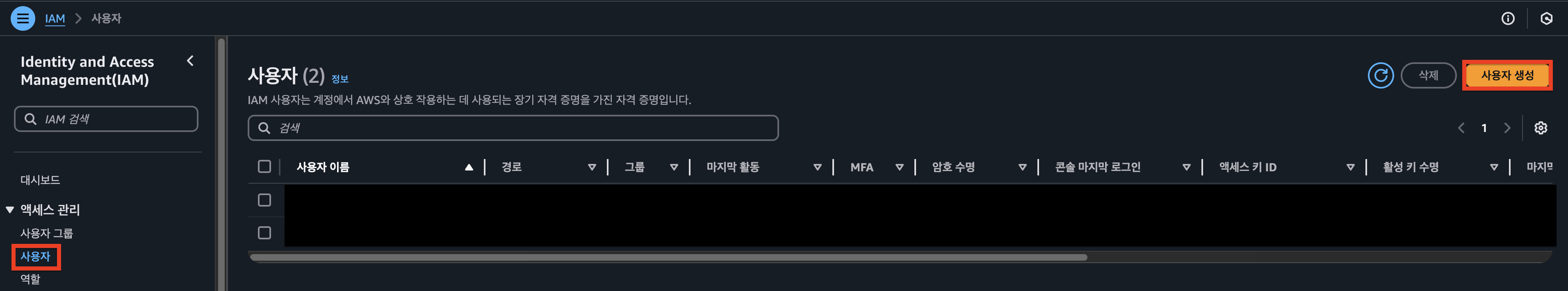 IAM 사용자 생성