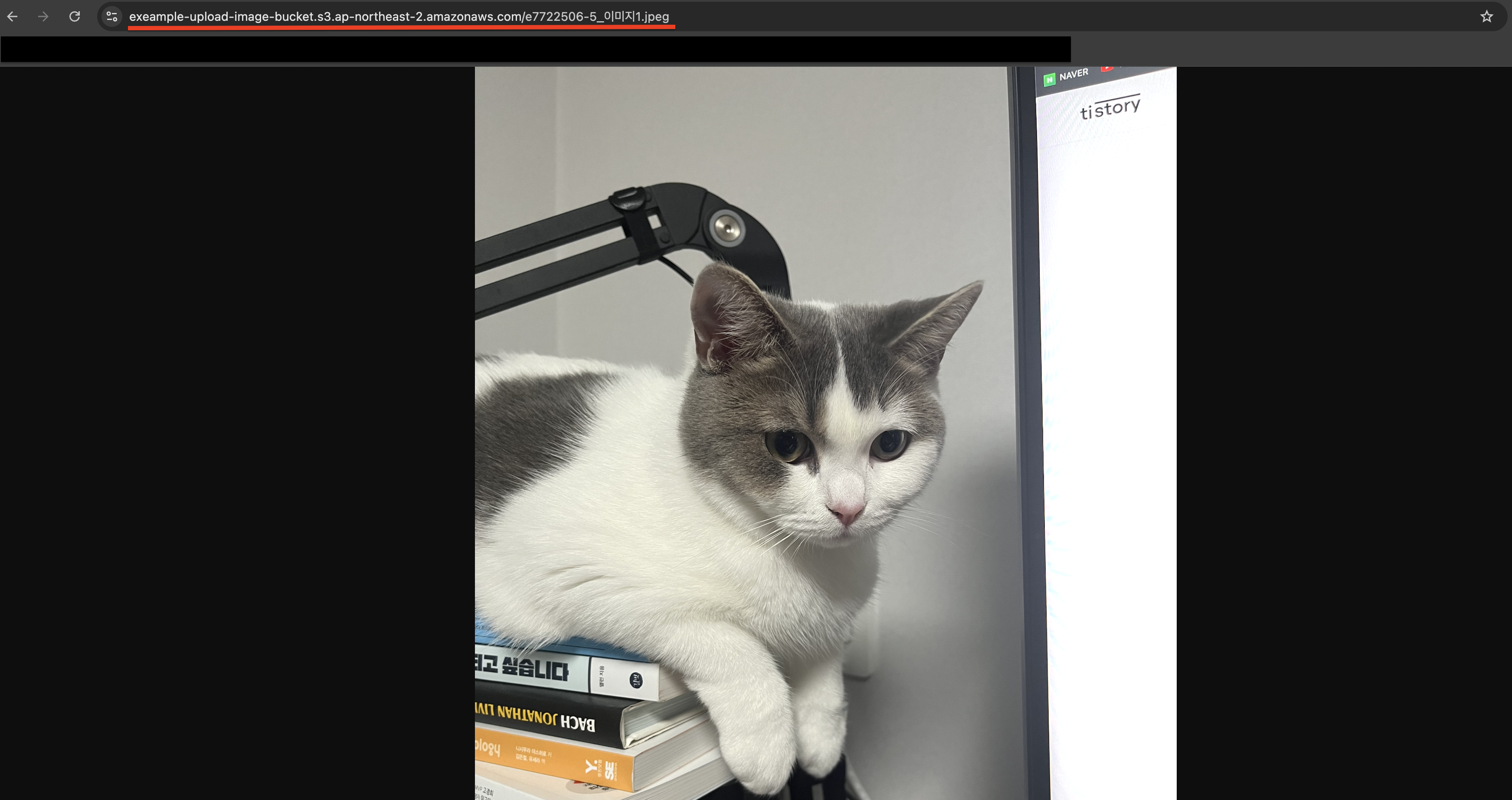 추가로 `ACL 설정`을 `퍼블릭 읽기 권한`으로 설정했기 때문에 응답받은 이미지 url을 브라우저에 입력하여 업로드된 이미지를 확인할 수 있습니다.