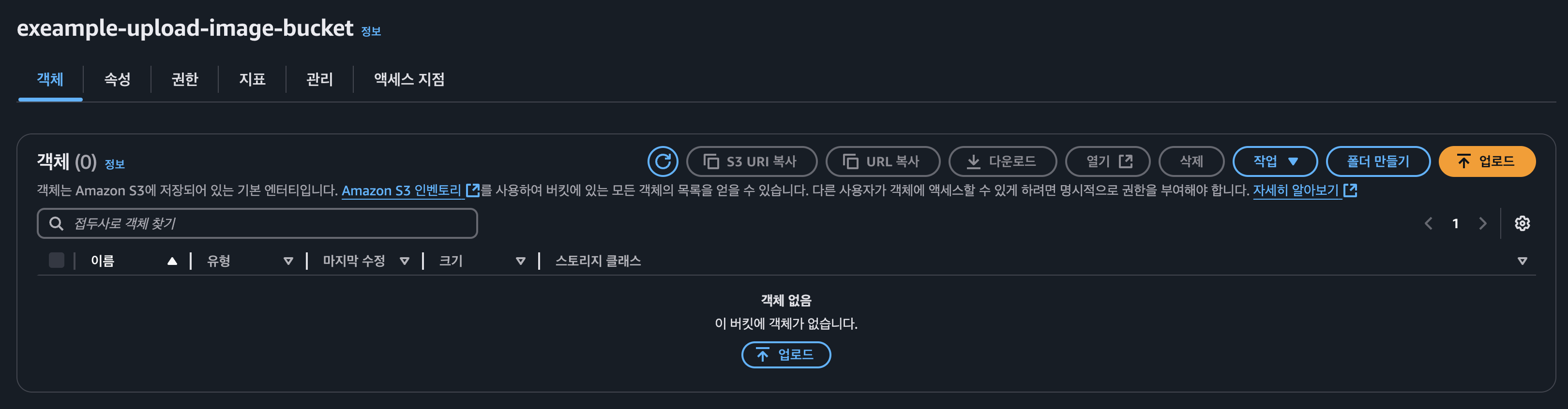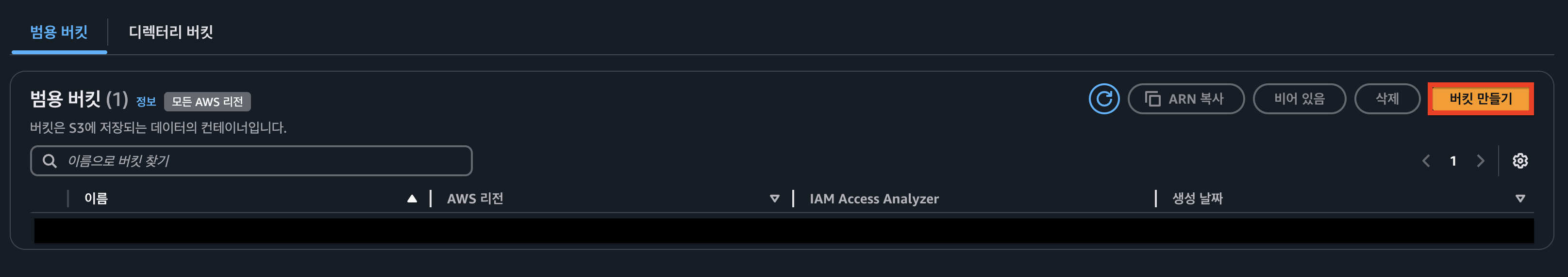 위 과정을 마치고 버킷 생성을 마무리합니다.