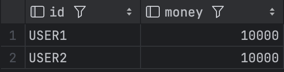 - `USER1` 계좌에서 금액을 차감하는 작업 완료 → `USER2` 계좌에 금액을 추가하는 작업 진행