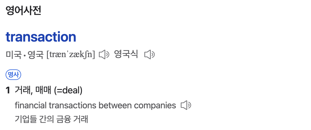 데이터 처리로는 `INSERT, SELECT, UPDATE, DELETE`와 같은 쿼리를 통한 연산 수행을 의미합니다. 사전적 의미로는 `거래`를 뜻하며, 데이터베이스에서 트랜잭션은 하나의 거래를 안전하고 일관성 있게 처리하도록 보장해 주는 것이라고 할 수 있습니다.