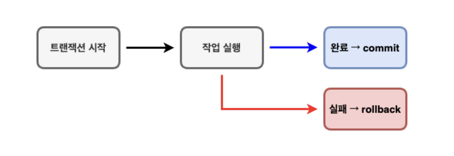 DB가 제공하는 트랜잭션 기능을 사용하면 `커밋(commit)`과 `롤백(rollback)`으로 정상적인 작업을 수행할 수 있습니다.