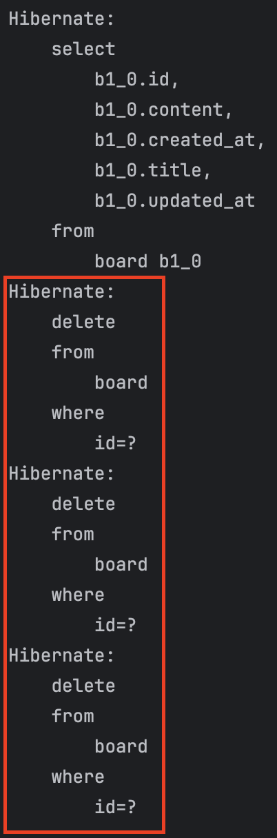 boardRepository.deleteAllInBatch(); // deleteAll -> deleteAllInBatch 변경