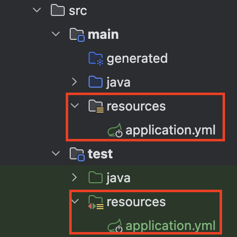 이렇게 구분 지어 생성하면 각 main실행, test실행별로 application.yml을 나누어 적용이 가능해집니다.